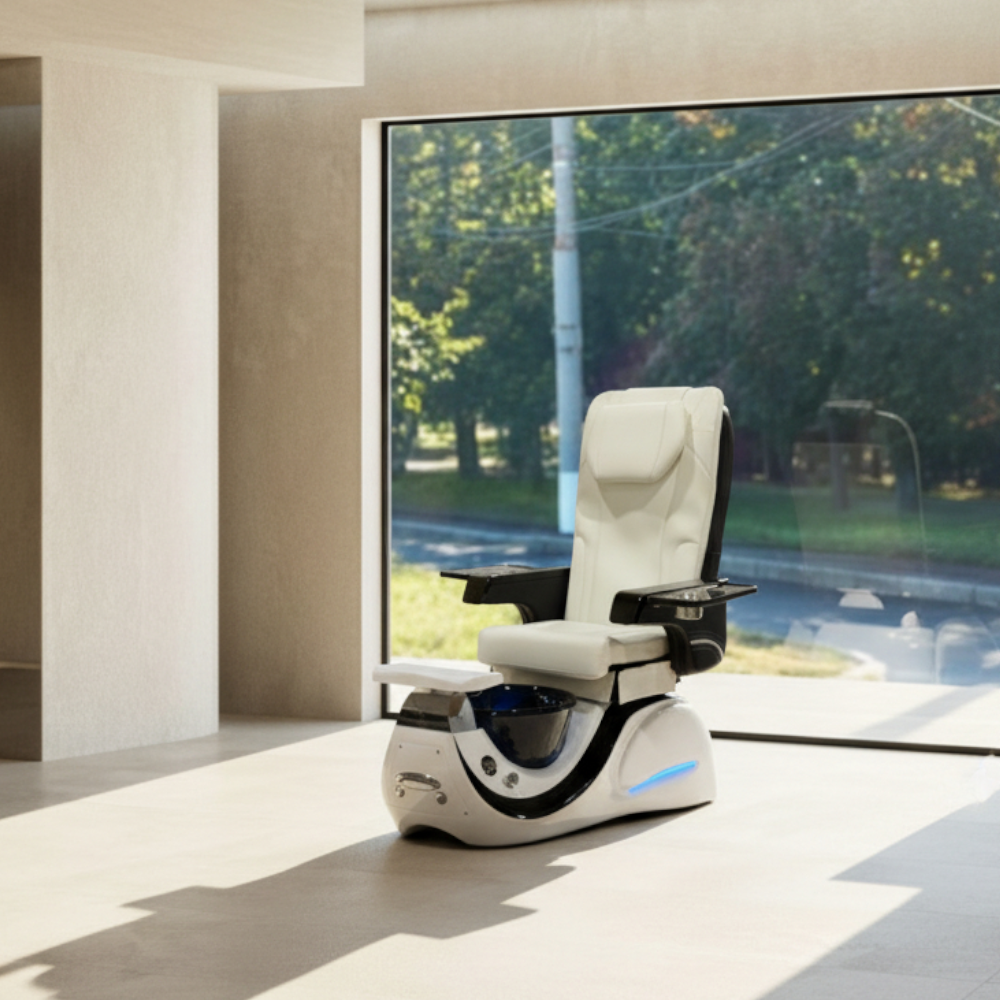 Dolphin Pedicure Chair White Seat on Grey Base with Grey Bowl