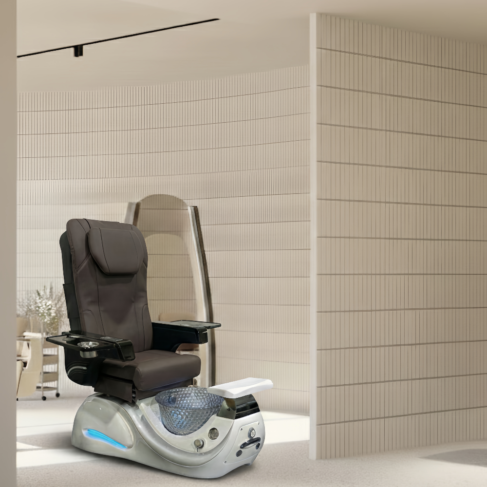 Dolphin Black Base Pedicure Chair with Cobalt Bowl and Bear Upholstery