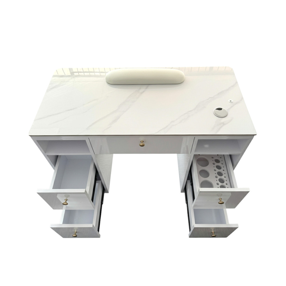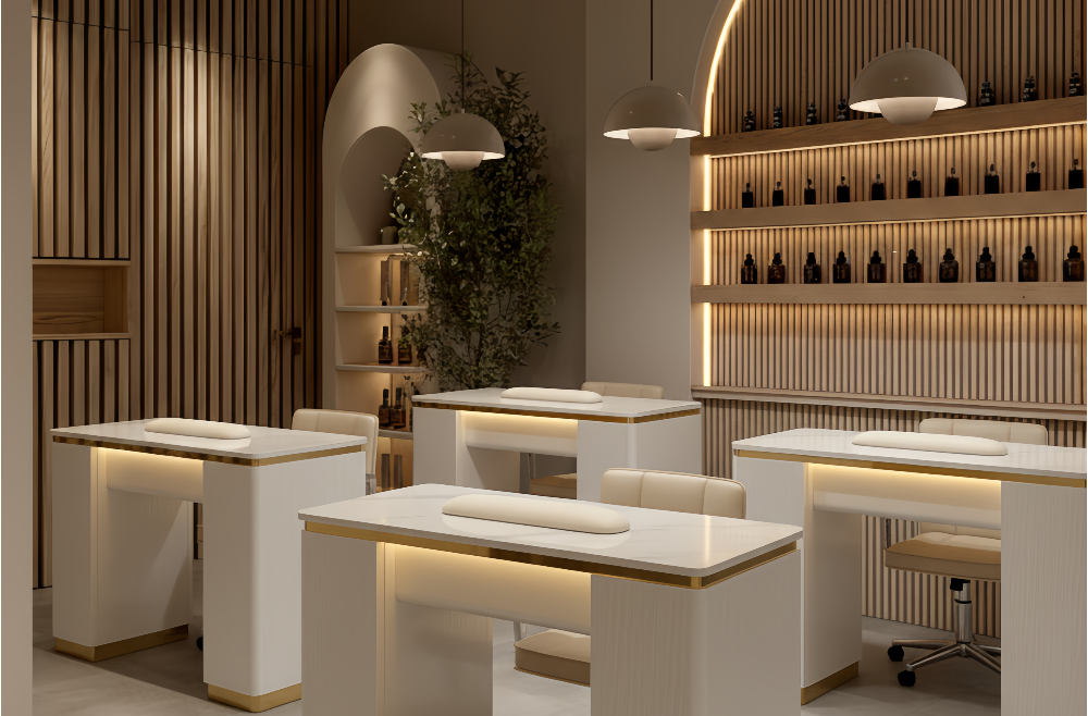 The Aurora Single Manicure Workstation is built for salons that need efficient use of space without compromising on design. Its compact footprint is ideal for smaller studios, private treatment rooms, or adding extra service capacity within an existing layout.