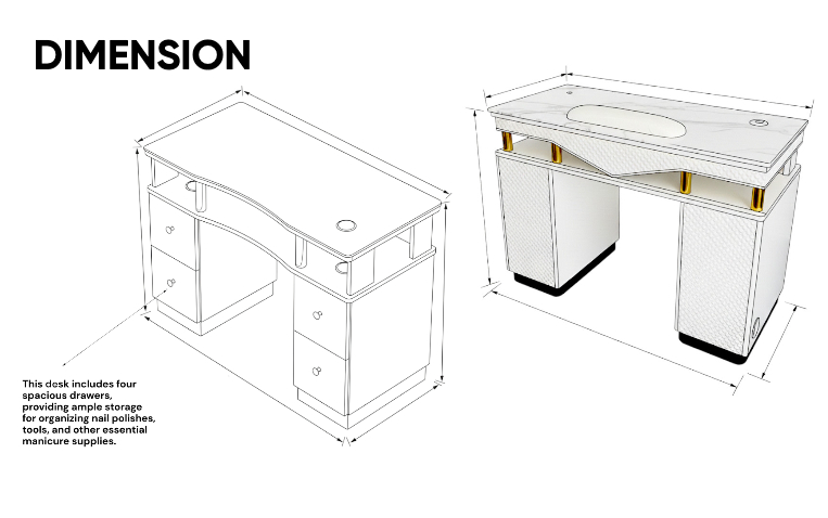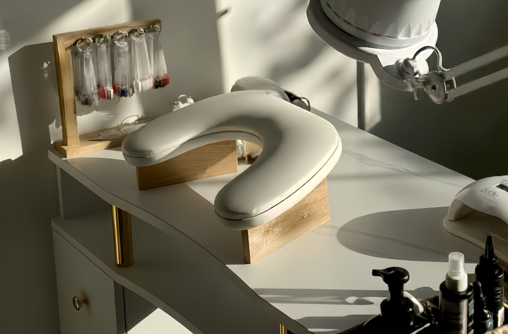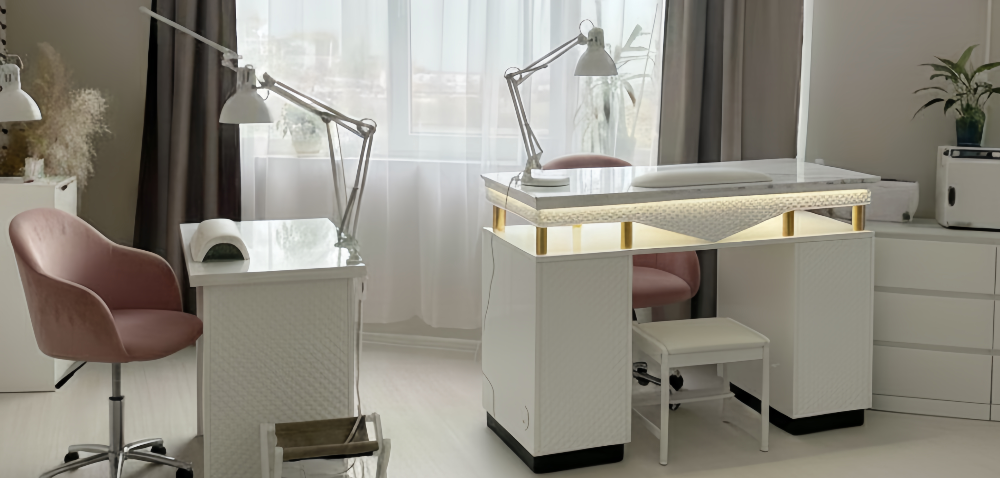 Its compact structure makes it ideal for private rooms, boutique salons, or studios that focus on calm, one-on-one manicure experiences. Version 2 improves proportions and surface balance for smoother workflow and visual harmony.