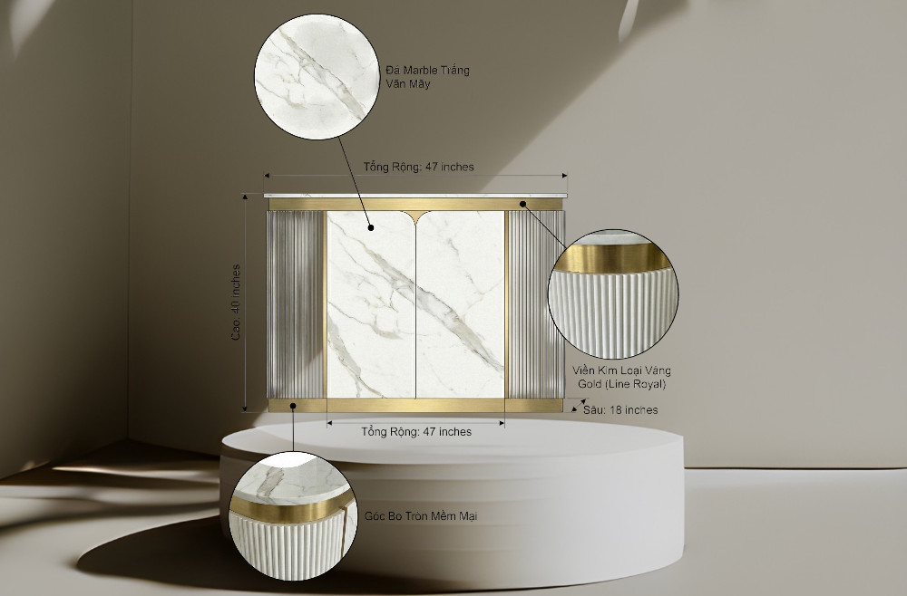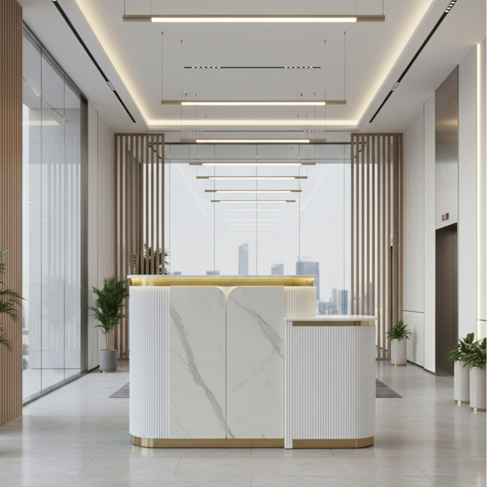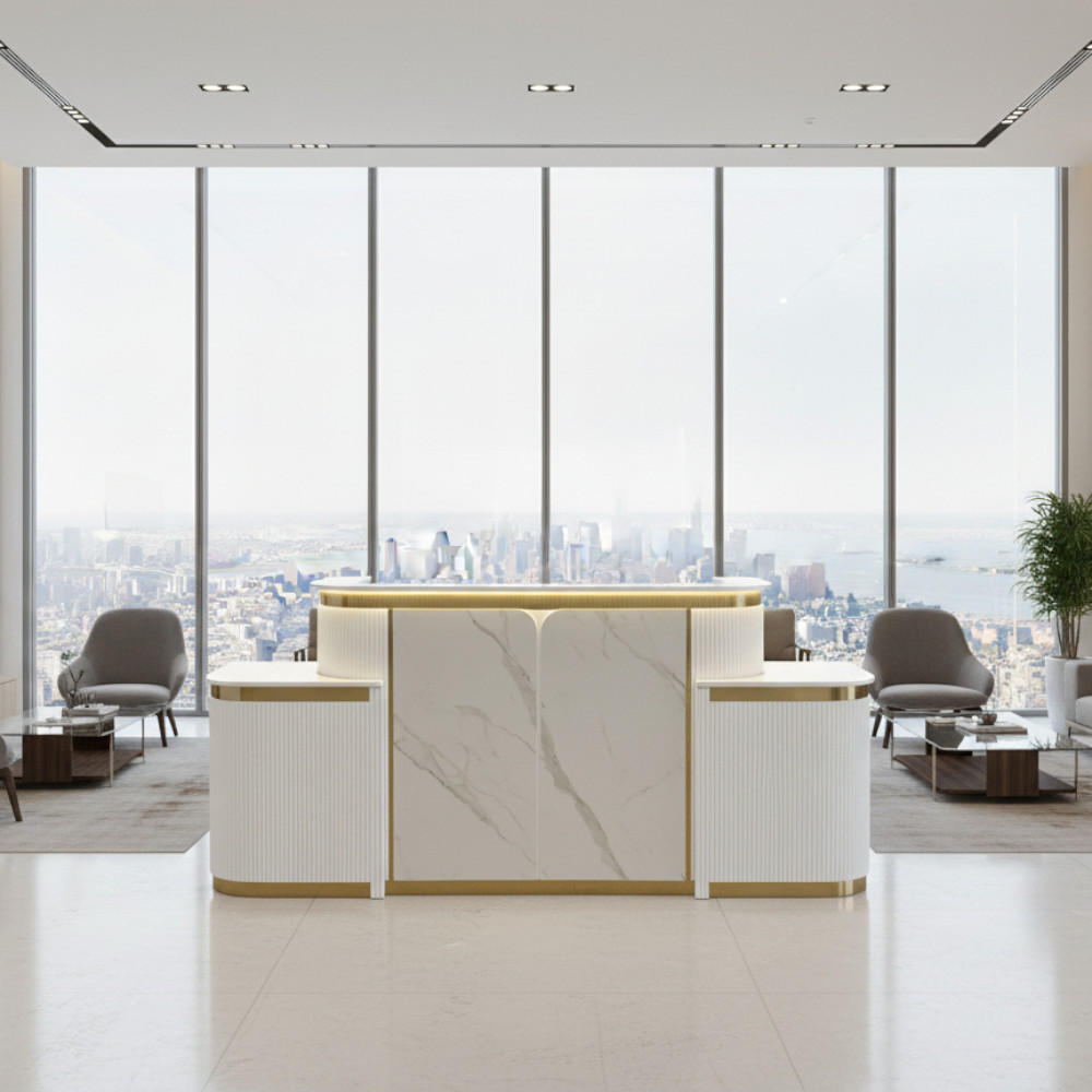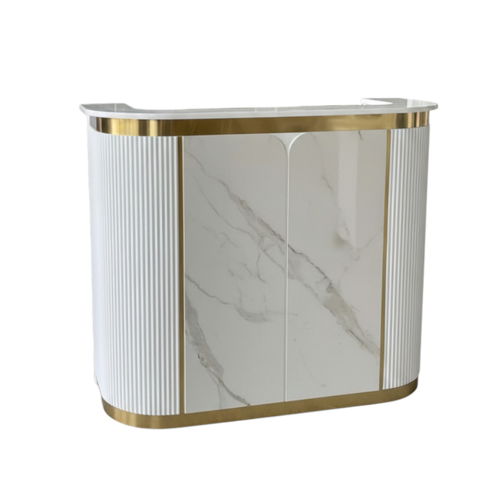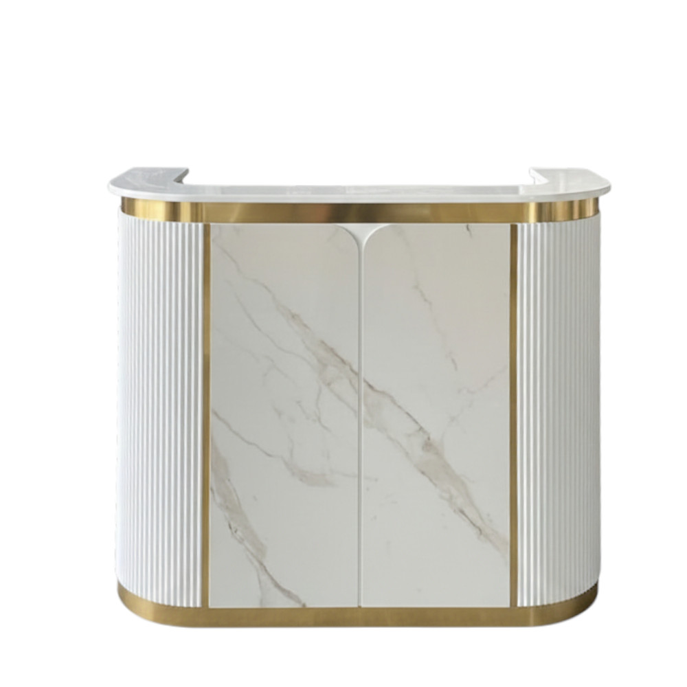Its façade and work surface are crafted to balance aesthetics with practicality—plenty of space for POS systems, appointment books, and décor, while keeping cable and clutter under control. Durable materials and high-quality finishes ensure Zenith continues to present a strong first impression over time.