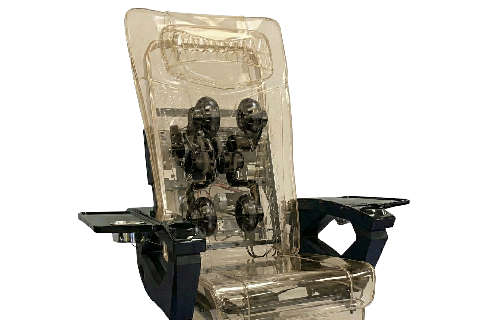 This edition includes all the comfort and functionality of the New Wave series: acetone-resistant PU leather, heated back massage, smooth reclining adjustment, and ergonomic shaping for all-day comfort. Technicians benefit from integrated armrest controls, USB charging, a device holder, cup tray, and streamlined storage features to support efficient workflow.