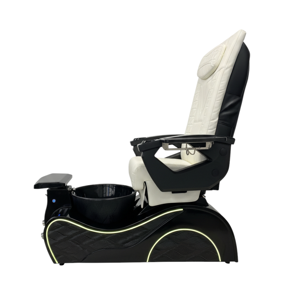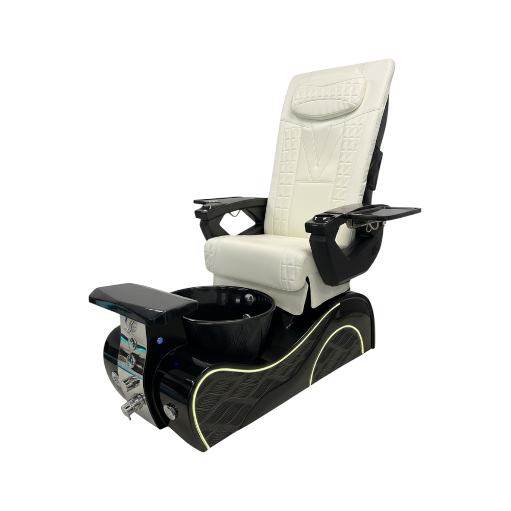 The New Wave Black Base Pedicure Chair with White Seat offers a striking contrast designed for salons that prefer a clean, modern, and visually balanced aesthetic. The deep matte black base grounds the design with a strong architectural presence, while the smooth white upholstery brings brightness and clarity—resulting in a minimal, gallery-like look that elevates any service space.